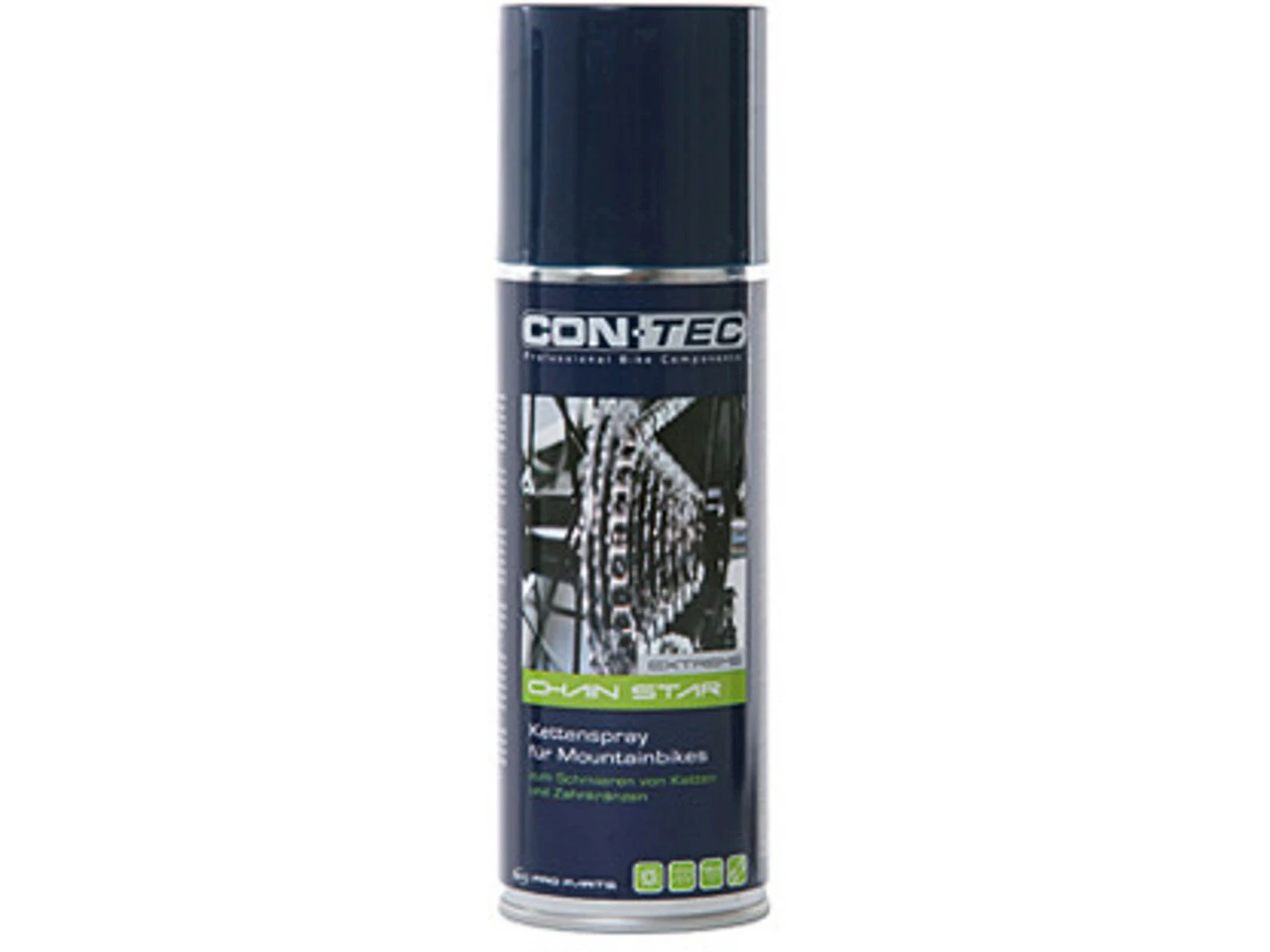 Das Chain Star Extreme Kettenspray von CONTEC ist ein hochwertiges Kettenfließfett zum Schmieren von Ketten und Zahnrädern. Es hat gegenüber der Version Chain Star Normal einen höheren Gehalt an adhäsiven Komponenten und ist deshalb vor allem zum Schmieren von Mountainbike-Ketten geeignet.