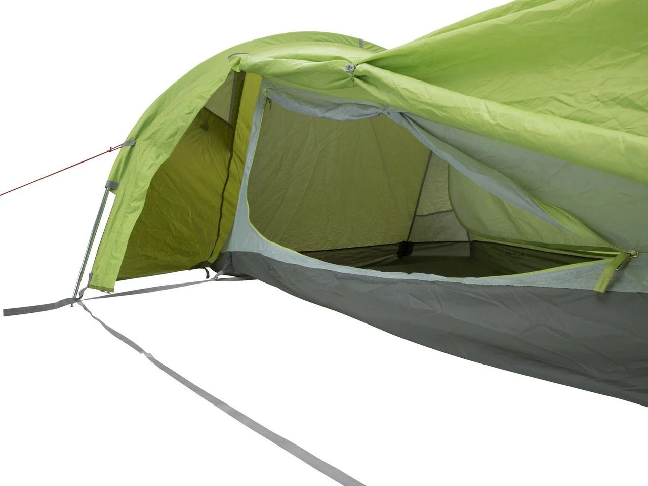 Belüftungsöffnungen sind durch eine Hutze vor Regen geschützt. Diese wird über einen 4-Wege-Reißverschluss am Zelteingang reguliert. Es ist ein Öffnen in beide Richtungen, von oben oder von unten, möglich.